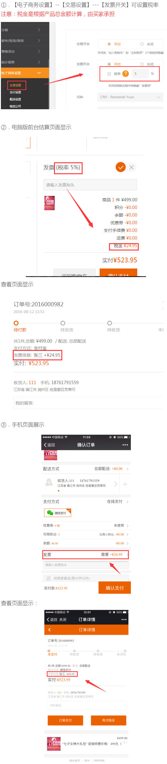 一、税率开启,和前台表现形式